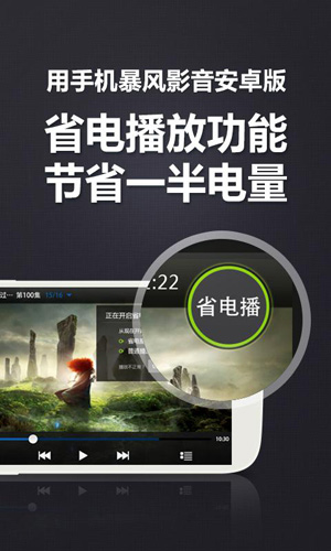 暴风影音安卓版省电播放功能已经发布,同其他视频应用相比,最高可节省一半电量。新版本兼具万能播放,一键优化高清,省电播放功能。