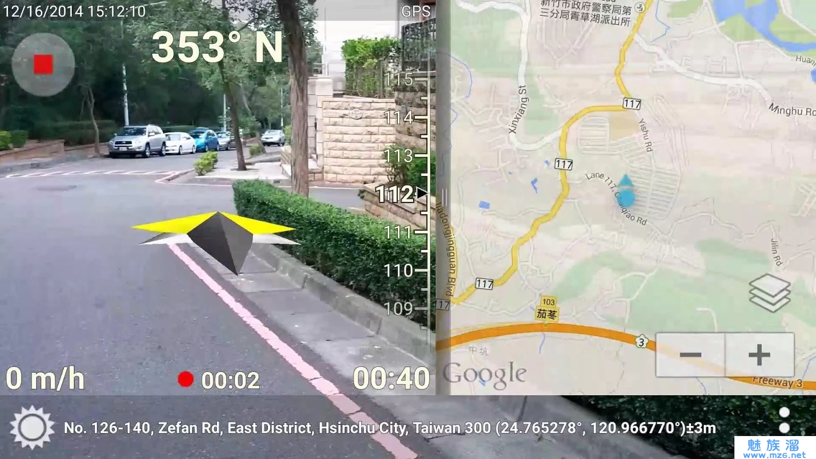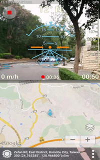 ★ 同一画面上显示实境, 3D 虚拟罗盘, 地图, 座标, 地址与行进速度