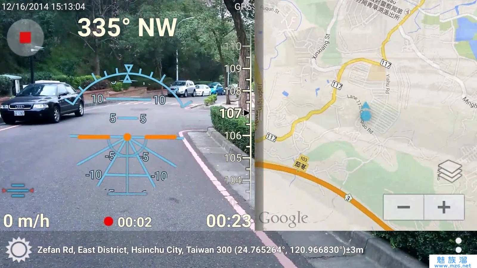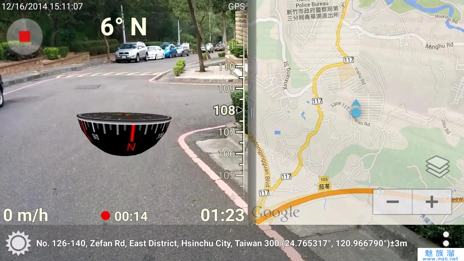 《3D立体罗盘 3D Compass+》同时显示3D 立体罗盘、实境及地图。直、横立模式都可使用。一边走路一边看着手上的罗盘,会不会撞到别人,或一头撞向电线杆?当你找门牌时,你知道你现在所处的地址吗?