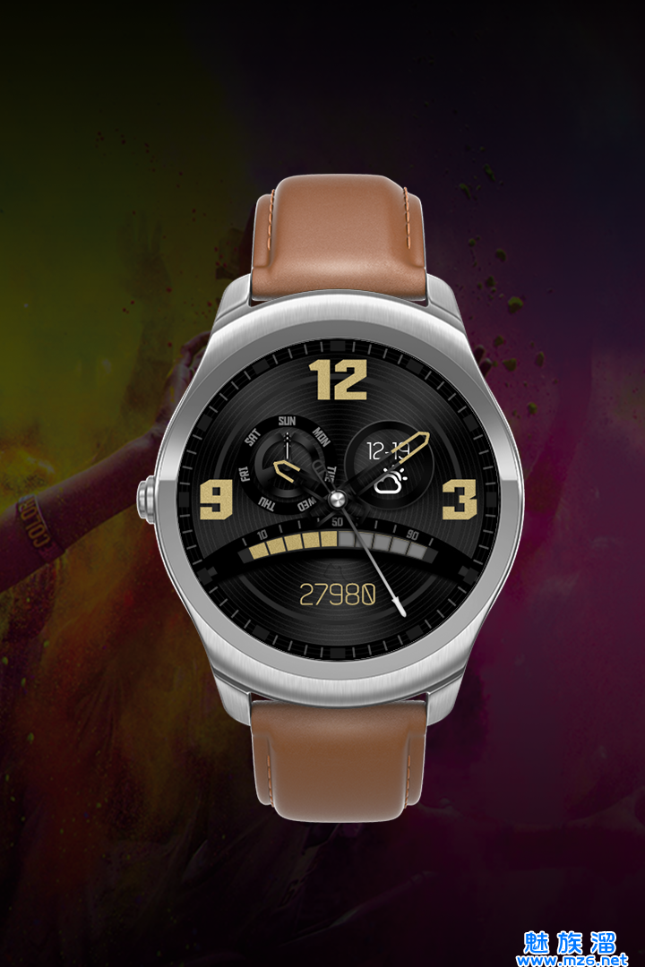 炫彩记步表盘有着经典复古的造型设计。它可能让你想起小时候拥有的第一块戴在校服下面的手表,时间显示大气、简单,一目了然。