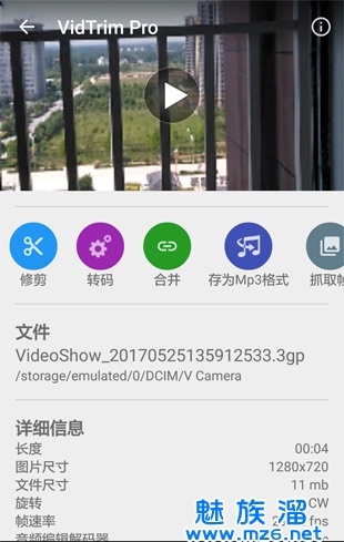 《维翠视频编辑器专业版 VidTrim Pro》是适用于Android设备的视频编辑和管理程序,包含多项功能,如修剪、合并、图像抓取、视频效果、提取音频(转换成MP3)和转码(压缩和转换为MP4)。您也可以直接通过应用程序与朋友分享您的视频。