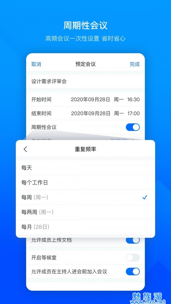 - 界面清爽简洁,一键预约、发起、加入会议;