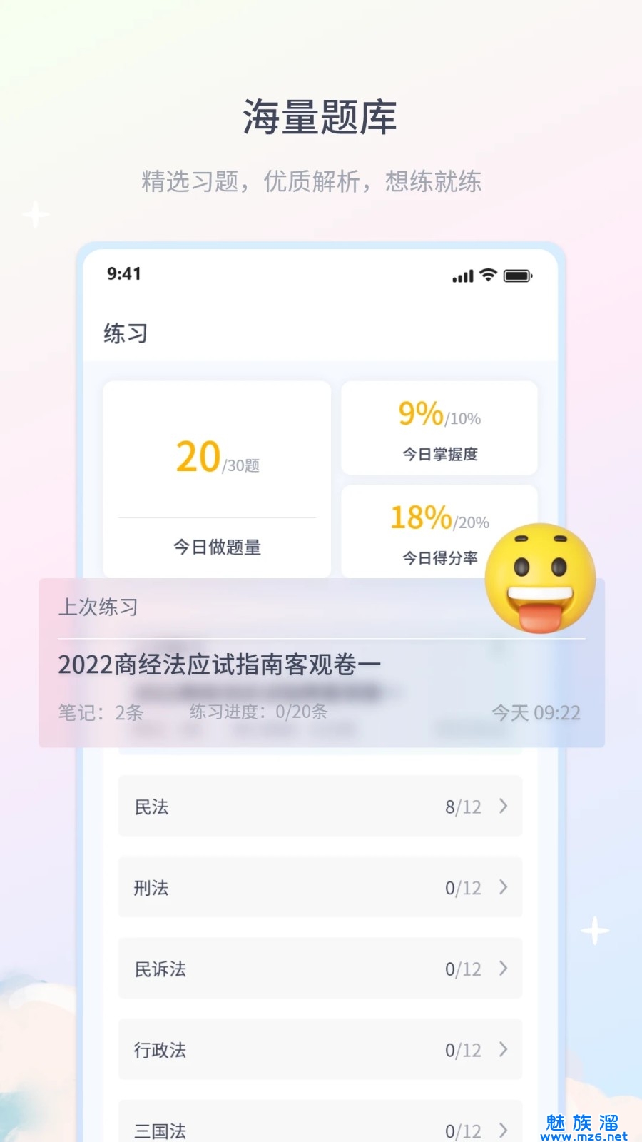 1、是一个包含了丰富的法律课程与考试题库的学习软件。