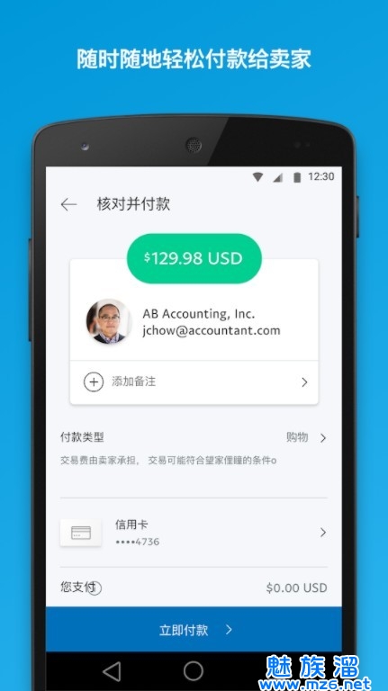 《PayPal安卓版》这是一款非常好用的生活应用,购物支付,快捷方便软件,《PayPal安卓版最新版》适用于世界交易的安全快捷的存款和支付工具,全球支付支持,收费服务也很重要,你不必忧虑外出时手机何时关机,感兴趣的朋友快来下载体验吧!