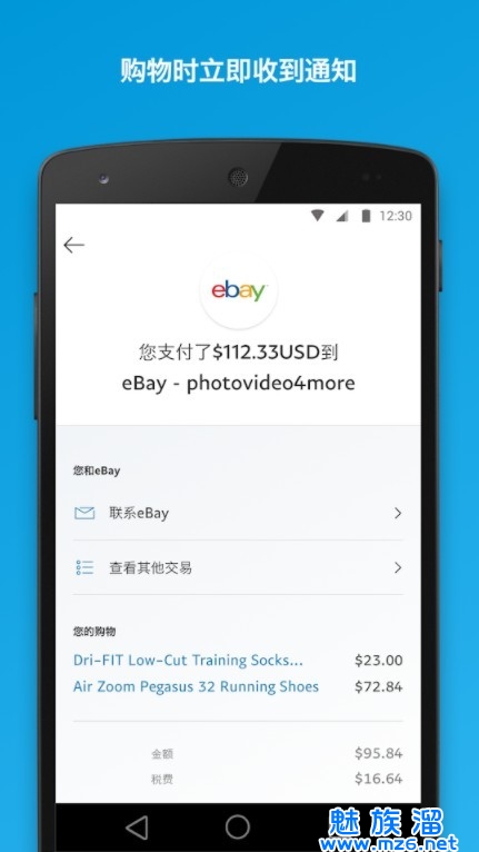 4、收支情况,明明白白每当您使用PayPal付款、收款和消费时,我们的应用程序都会给您发送推送通知,帮助您及时了解账户动态。通过PayPal付款时,无论您使用的是PayPal余额、银行账户还是借记卡和信用卡,您都能在这款安全的应用程序中找到所需的一切来轻松管理您的交易。