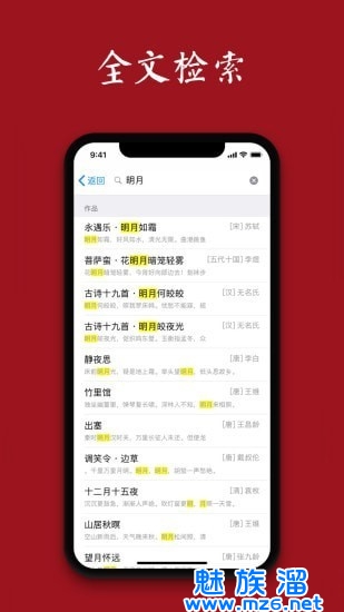 2、内容丰富:涵盖经典唐诗宋词,支持全文检索;