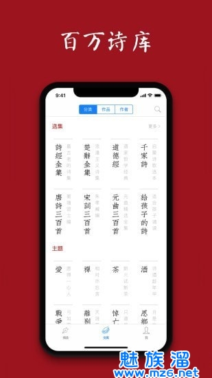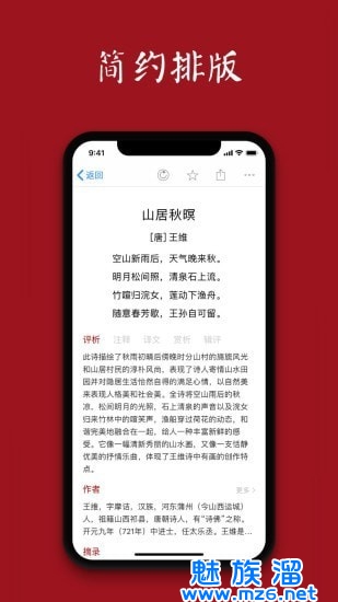 4、精选中国唐诗、宋词、古文,为你提供一片干净清新的欣赏空间;