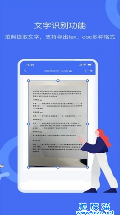 2、支持手机拍摄图片,并识别图片上的文字进行提取,将你的手机变成一台扫描仪;
