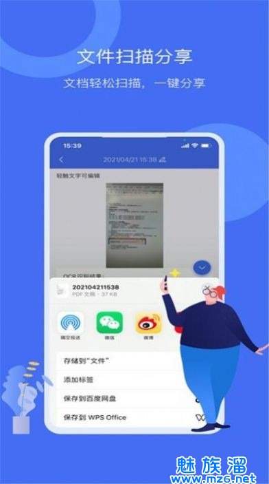 2、文档扫描:对文件开展拍照扫描后,能快速转化导出为pdf文档并保存;