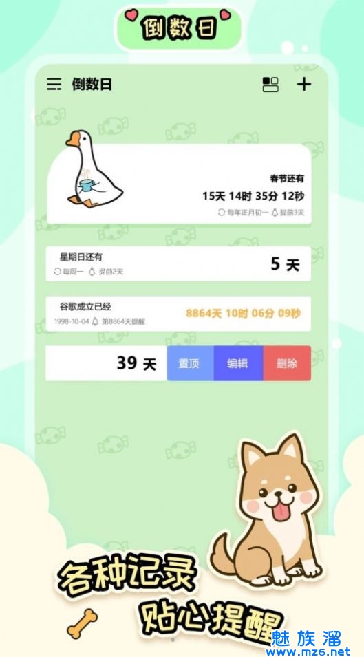 1、轻松记录各种重要日子的助手,支持多种功能。