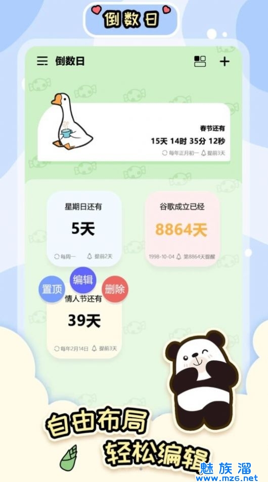 《桌面倒数日大师》支持倒计时记载、时刻查询、日历和群件等功能服务,《桌面倒数日大师app安卓版》根据个人需要,在线作业是免费的,对每个人来说,这是一个相互尊重的必要东西,有助于解决时刻记忆问题,感兴趣的朋友快来下载体验吧!