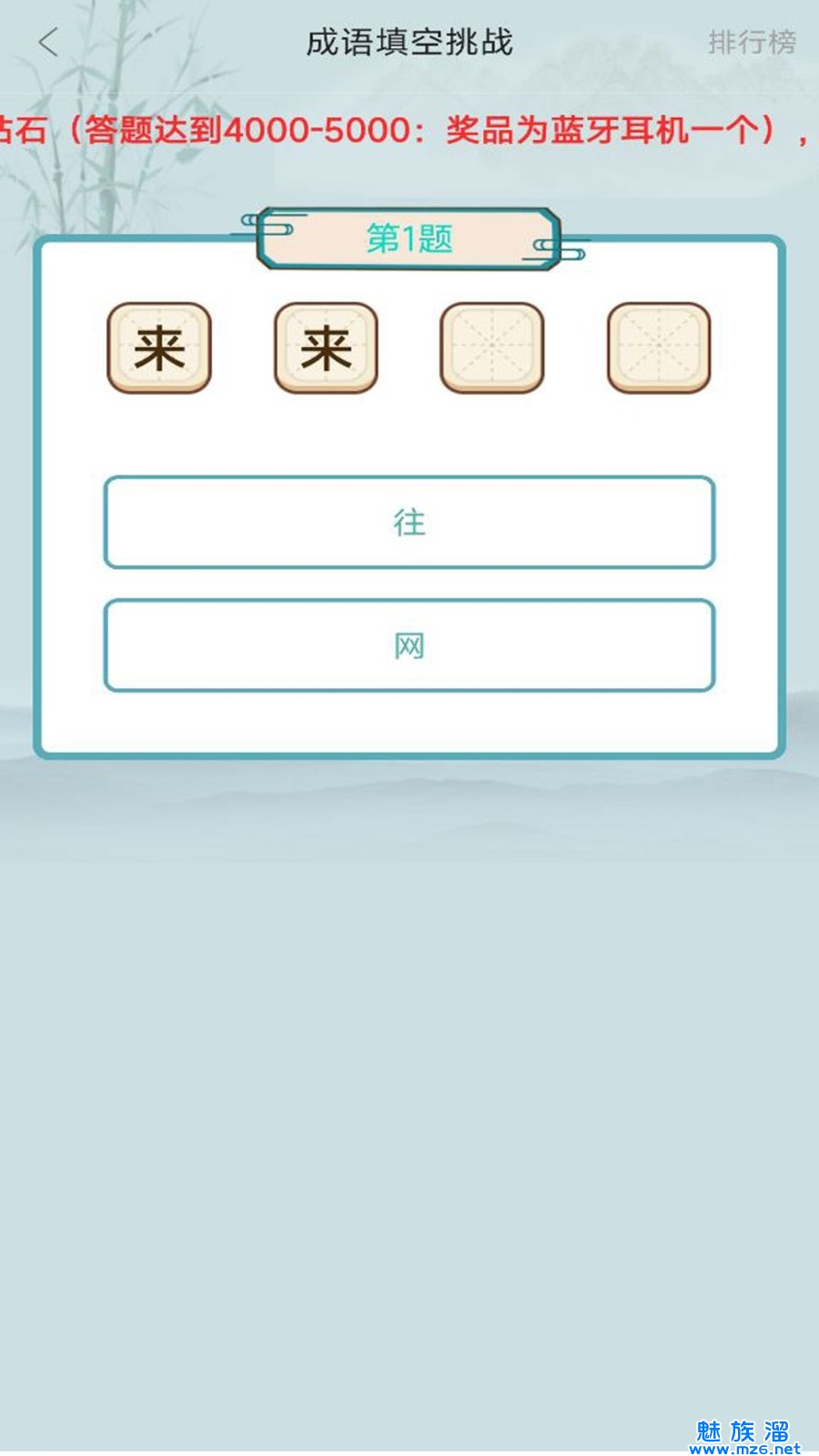 3、成语填空答题赢实物。