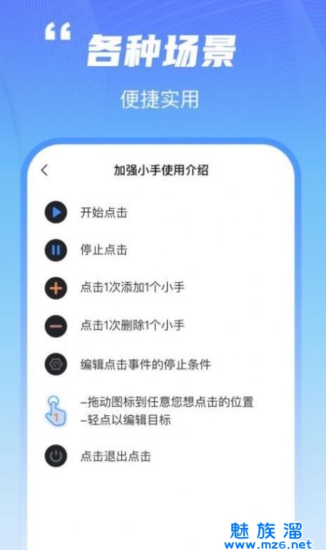 鲨鱼连点器免费版是一款适用于多种场合的自动连点器工具,你还在因为抢不到爱豆的演唱会门票而伤心吗?你还在因为买不到回去的车票而苦恼吗?快来下载《鲨鱼连点器免费版安卓》吧,只需要简单的修改参数,就能自动连点屏幕,解放双手,感兴趣的小伙伴快来下载试试吧!