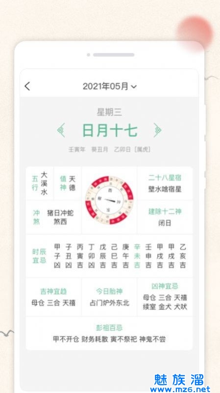 1、时间信息、每日宜忌等一目了然。更全面的黄历信息一触即达。