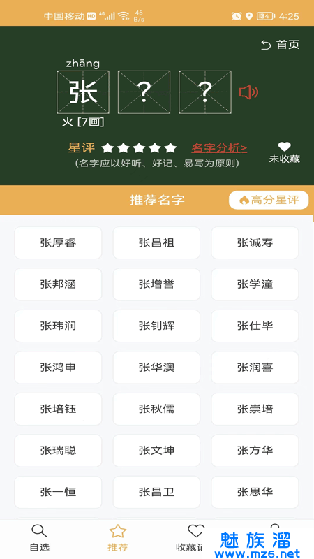 起名自选器是专为需要起名的用户打造的一个手机起名软件,能够从多个方面进行辅助起名,帮助家中有新生儿的用户更的取名字,对于有改名需要的用户来说也很方便。能够进行分析和匹配,为大家推荐适合的名字,你可以从其中挑选出自己喜欢的名字,让起名更简单。