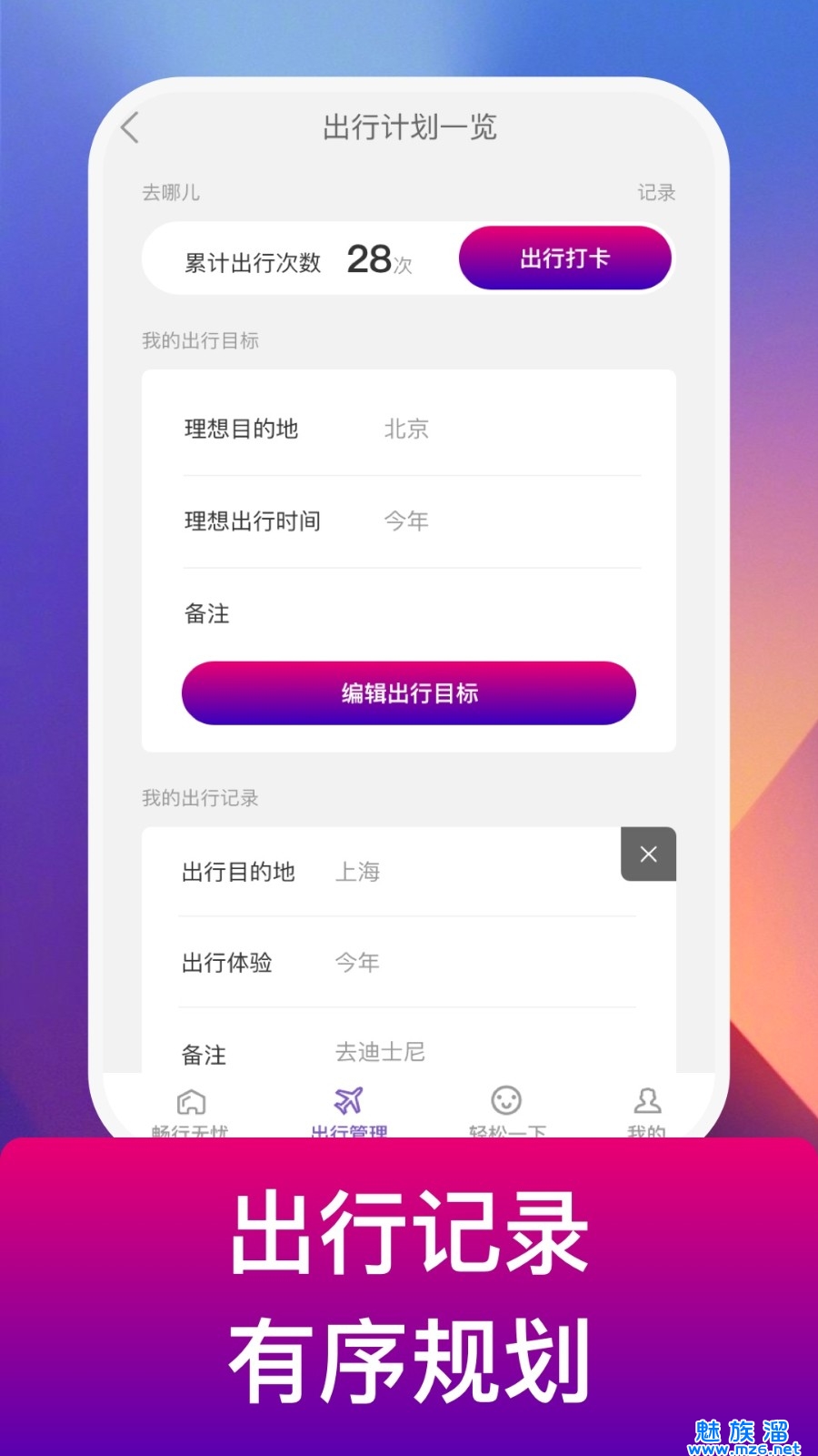 2.出行管理:记录出行信息,帮助你日常有序规划,提供出行参考,让你出行之路不在迷茫