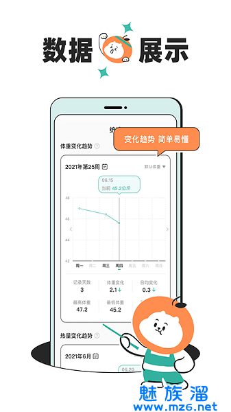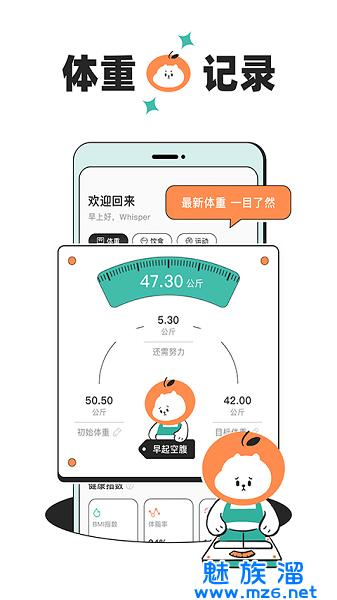 一款用于记录每日体重、饮食及运动的生活类应用。一只戴着橘子头套的猫会陪伴用户一起科学减肥,逐步养成健康的生活习惯。软件的操作都是非常轻松的,还有丰富的食物信息,都可以帮助大家查询到能量信息,更好的规划自己每天的饮食计划。有关于饮食的,也有关于运动方面以及生活习惯方面,全方位的帮助用户进行减肥,实现科学减肥!