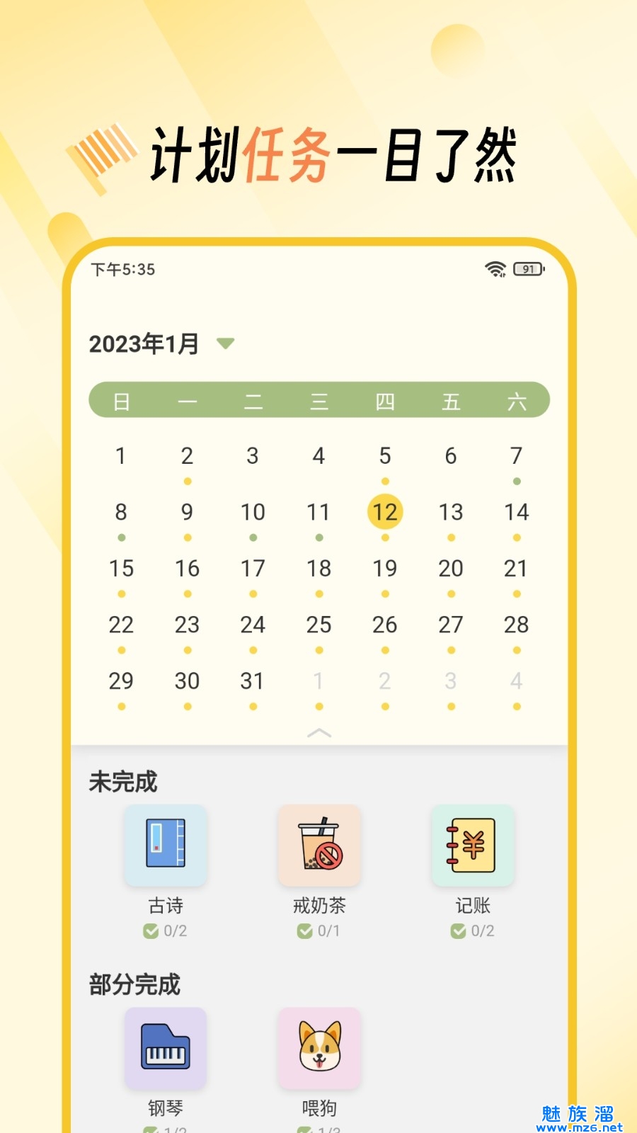3、计划任务一目了然,未完成、部分完成整理分类;