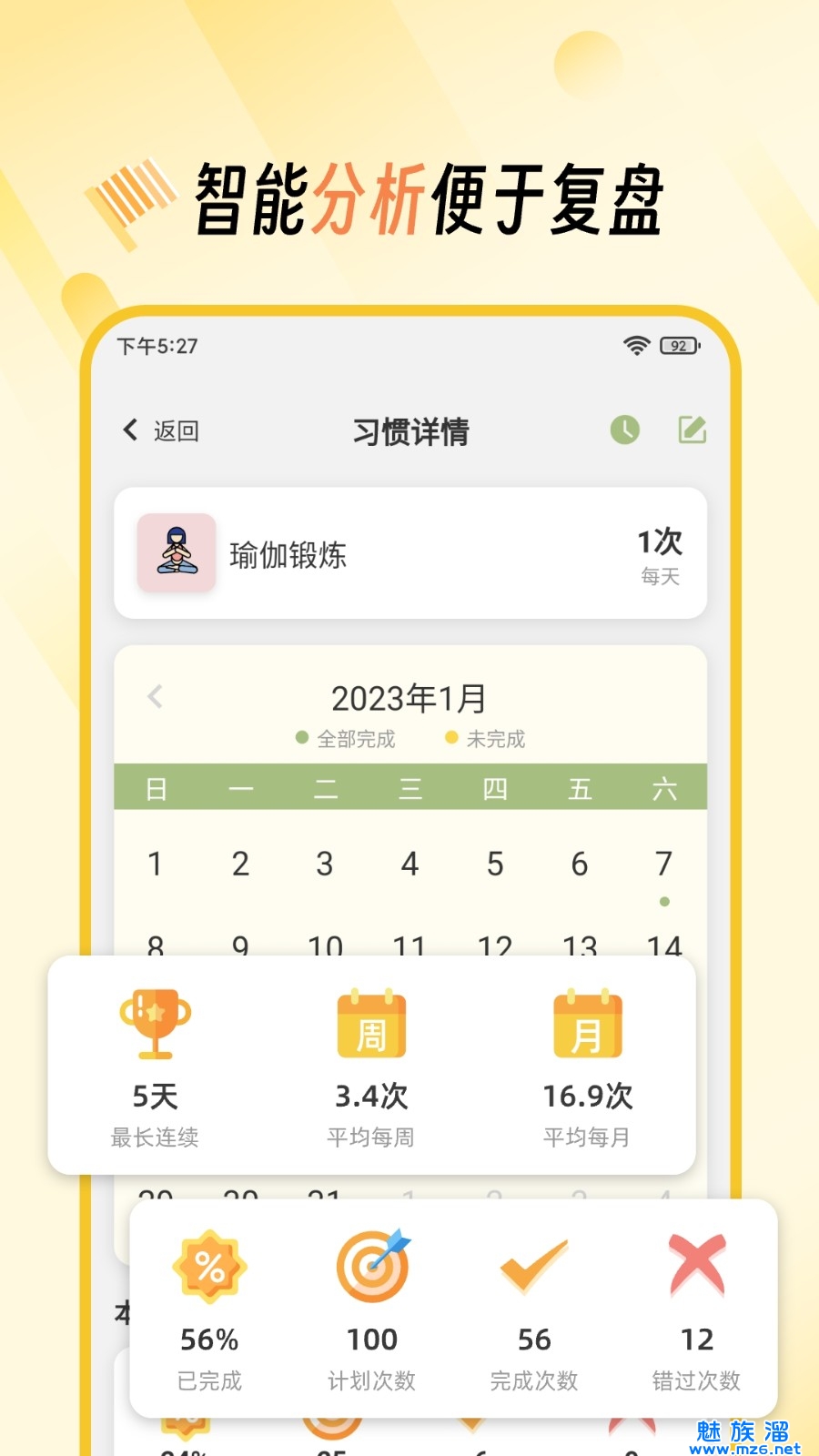 4、智能分析便于复盘,可查看习惯详情,时刻了解!