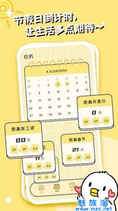 1、也有休息日和节假日倒计时,让生活多点期待。