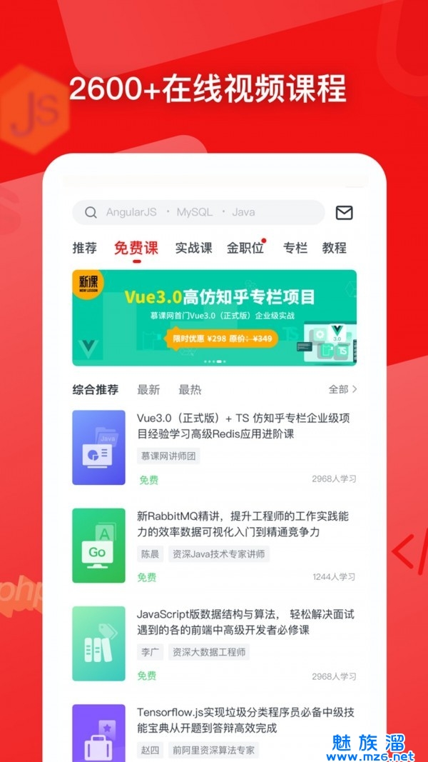 《慕课网官网版》在该软件内丰富的课程知识都可以简单的来了解看看呢,为大家推荐丰富的知识学习的哦,培养IT人才,在这里丰富的IT相关知识可以去掌握呢,看看自己对什么还需要学习的,每天坚持来观看课程学习吧,视频流畅高清,可以自由来学习吧。