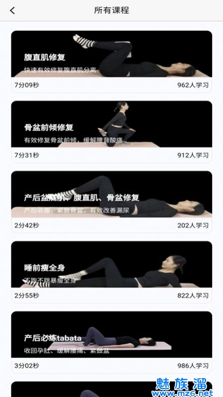 2、训练内容覆盖盆底肌修复、腹直肌修复、骨盆前倾等海量全面的专业性课程。