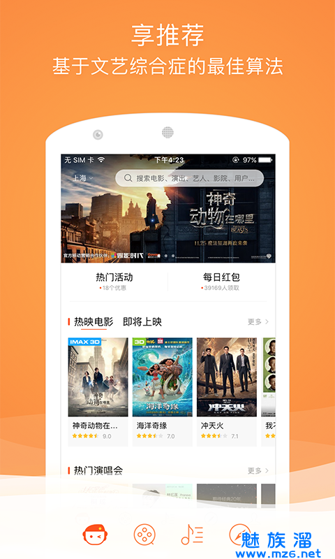 格瓦拉生活app是一款方便快捷的手机购票软件,这款软件可以直接了解影视资讯和影院上映内容的情况等等,买票还可以获得各种各样的优惠,智能的选择座位,支持周边影院推荐,感兴趣的朋友快来下载吧!