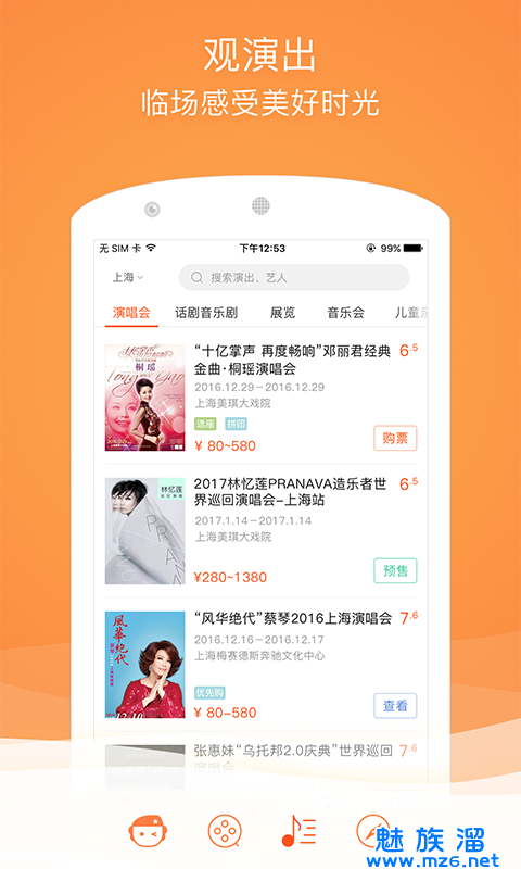 1、演出覆盖130多个城市,连接2000多场演出和体育场馆,捕捉所有受欢迎的演出和活动。