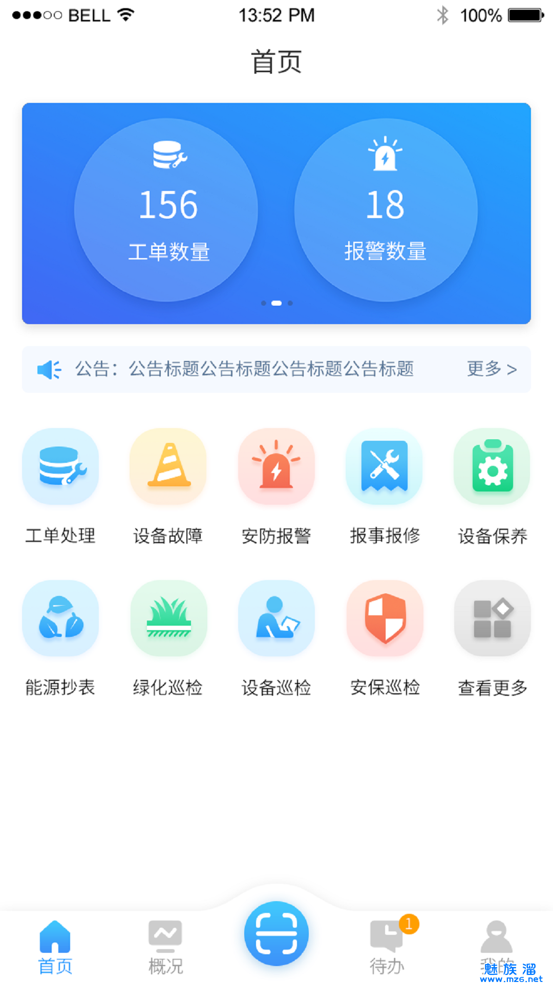 1、全面支持报事报修、巡检核查、故障报警等30余个功能模块;