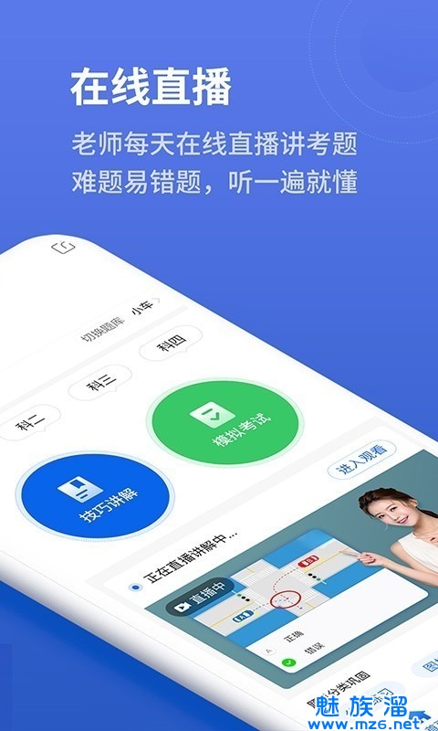 模拟考试:全真模拟考试,包含2017年新施行的新交规考题