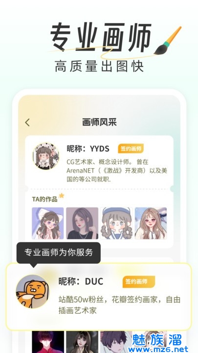 【大师入驻】优质签约画师,经验丰富的画师特邀入驻,大师风格亲笔绘制,支持高端定制。
