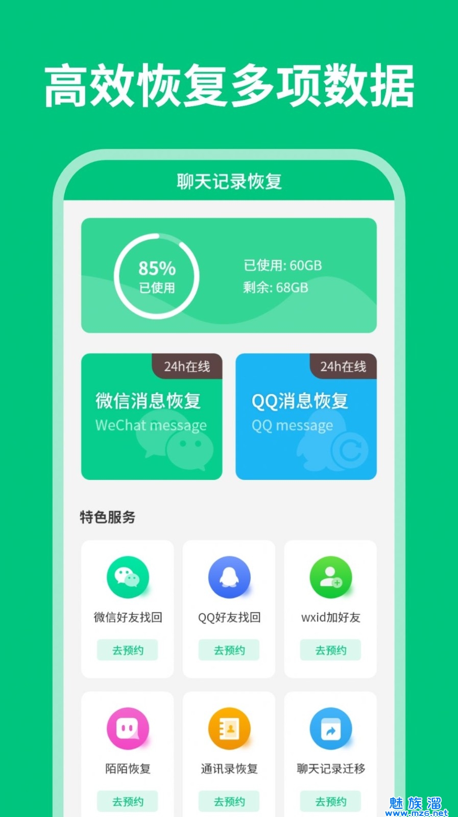 1、各种聊天消息在线一键恢复使用,十分的便捷。