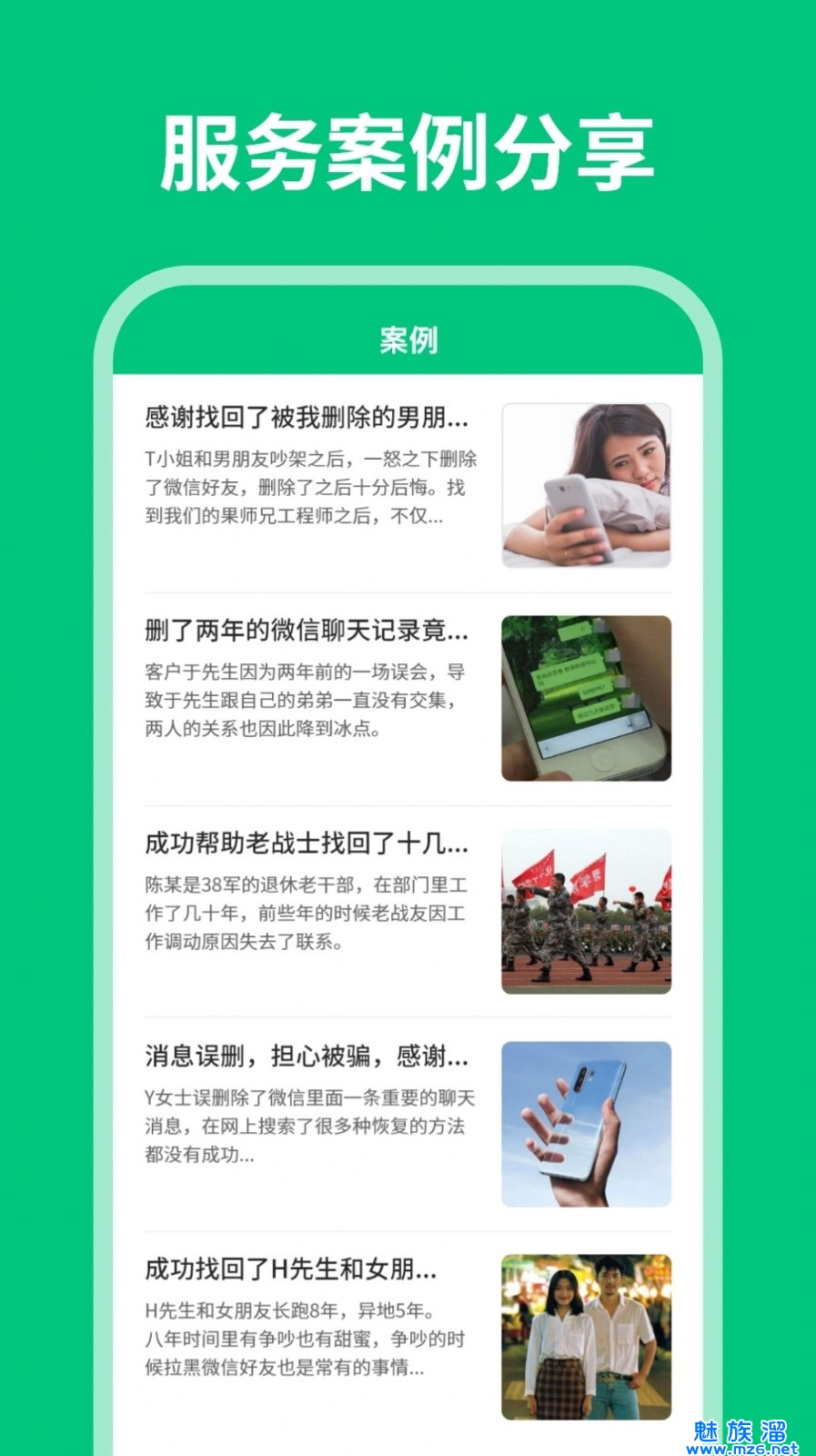 1、微信好友找回、聊天记录恢复、微信通讯录找回。