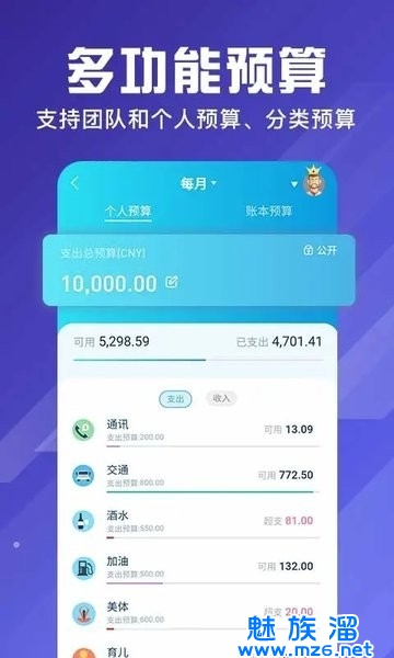 支持多用户多账本的预算,可按日、月、年以及不同类别设定预算。