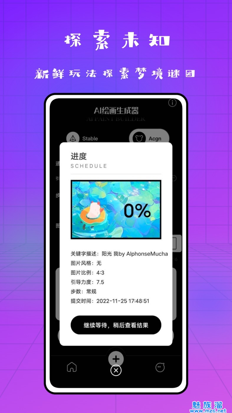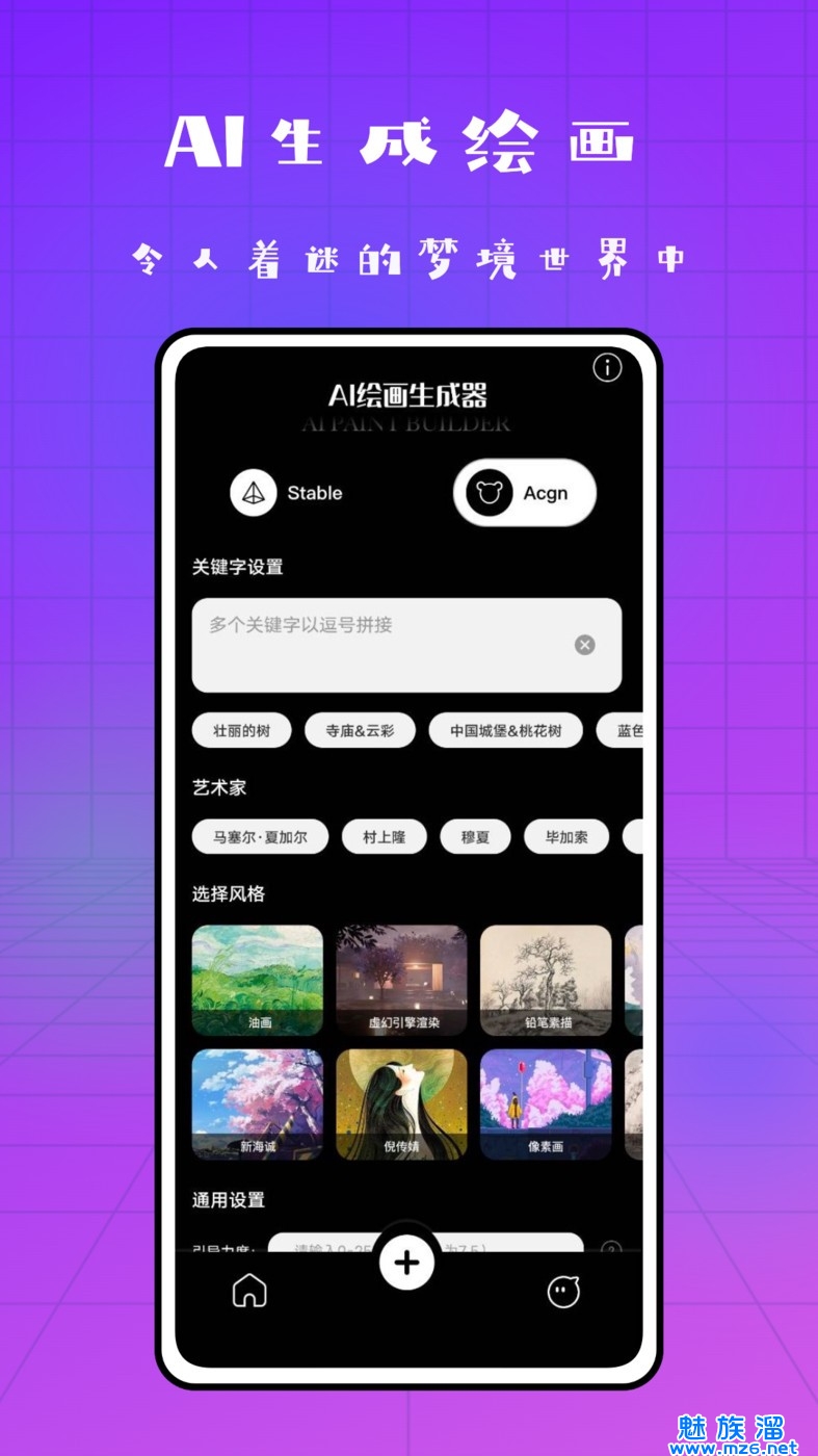 2、输入关键词,将枯燥无味的关键词瞬间变成创意十足的画作;