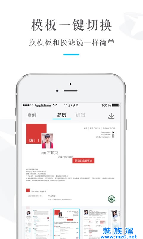 由世界500强企业HR和设计师共同制作,专业又高颜值的简历模板。换模板跟换滤镜一样简单。