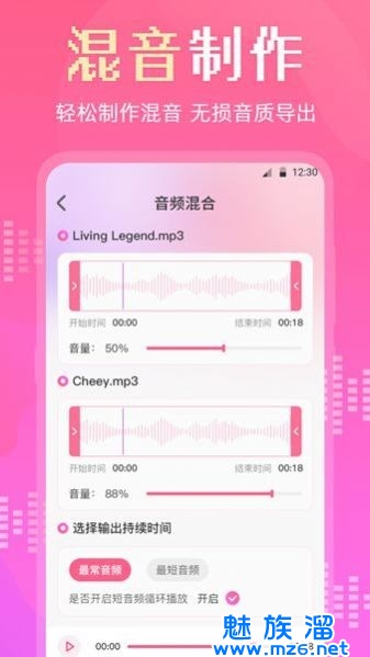 1、音频混合:可将多种格式的音频音乐进行混合;