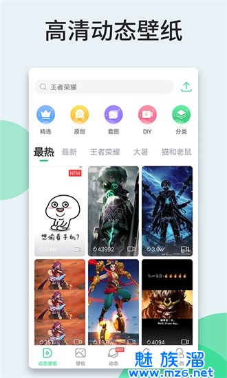 1.支持壁纸下载,一次下载,永久本地面流量使用