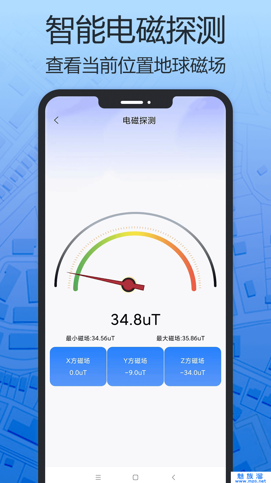 4、智能电磁探测,查看当前位置地球磁场;