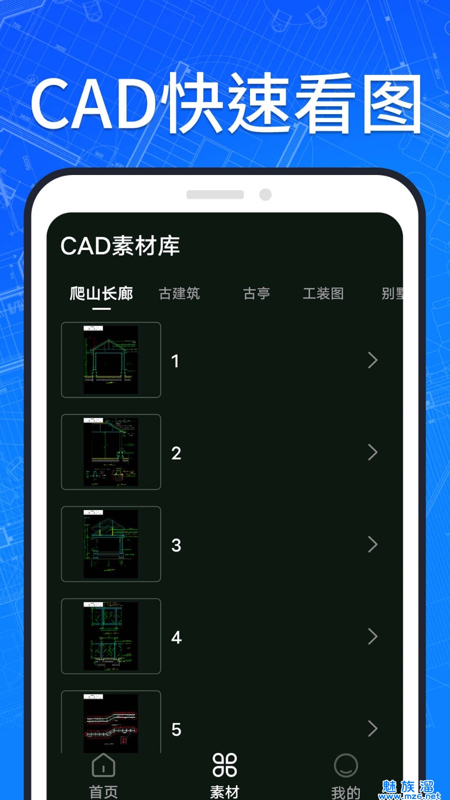《CAD快速看图纸手机版》是一款非常便捷的手机cad看图软件,用户可以将图纸文件批量导入《CAD快速看图纸手机版安卓》,随时随地可以在手机上进行看图,还能在图纸上进行标注,以及超多测量功能,有需要的用户快来下载吧!