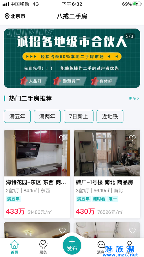 八戒二手房交易平台是一款非常专业的买卖二手房交易软件,如果大家想要买二手房,或者手中有闲置的房子需要出售,八戒二手房将是你最好的选择,全程一条龙专业免费服务,价格好服务优,手续齐全不繁琐,只需要你提供相应的材料,其他的不要你做任何事,官方帮你解决!