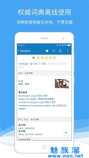 - 准确音标,同时内置真人法语发音、全球各地法语发音让你了解每个单词的读法
