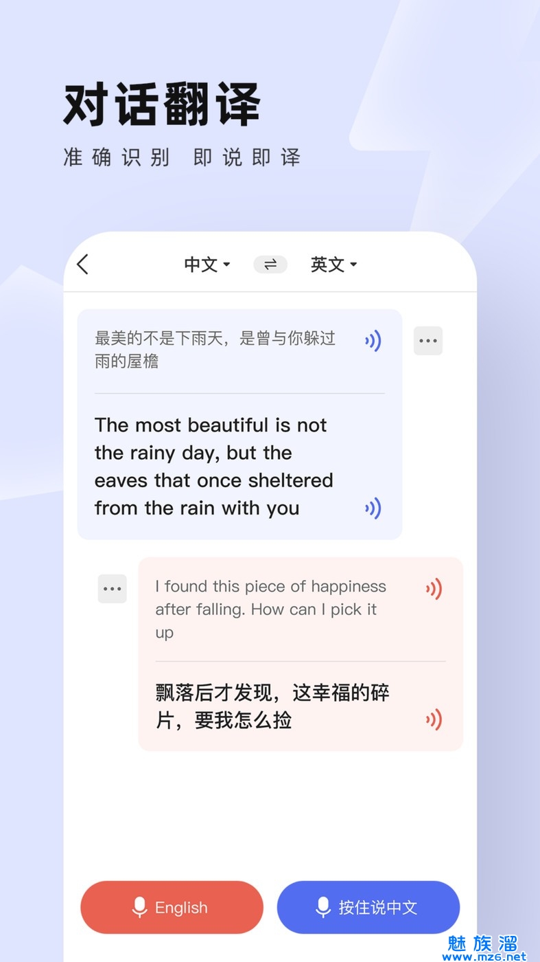 1、语音实时翻译到语音,支持中英互译即时播报;