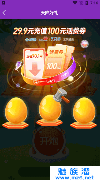 进入福利界面后,礼包是随机的,下面是这次的礼包,这次的礼包是砸金蛋,随意砸开一个;