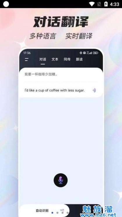 4、可以基于实时语音输入,快速准确地进行翻译,实现即时互动;