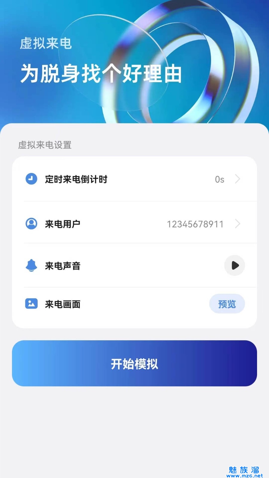 来电效果逼真,自定义来电人,自定义铃声,延时来电,简洁无广告,使用操作简单。