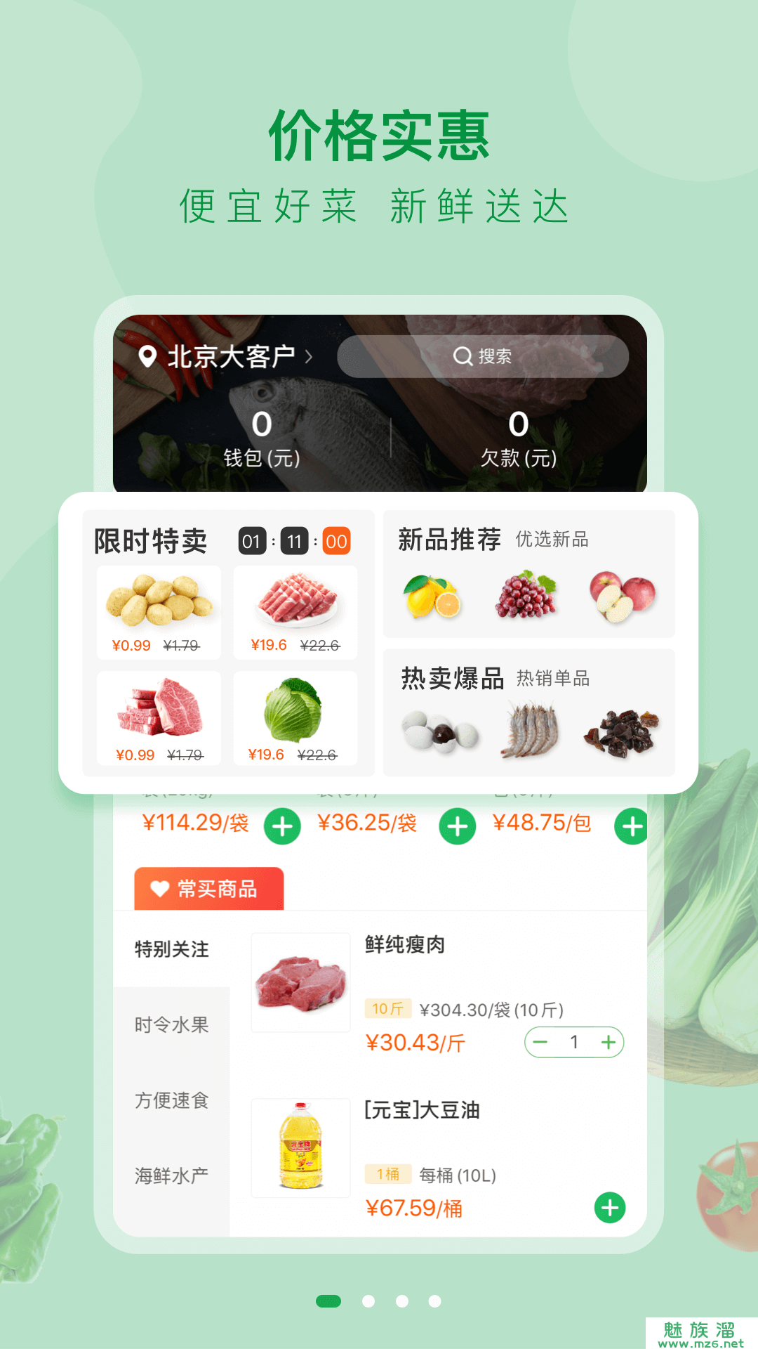 美菜大客户最新版下载,在该软件内给我们丰富的食物采购的体验呢,丰富的品类,不管是商家采购还是个人买卖都可以在平台中了解的呢,为各位小伙伴们带来最新鲜的食物呢,自由选择,还有超多材料等等都可以直接来选购呢,专属的在线客服给大家推荐,来免费下载美菜大客户APP。