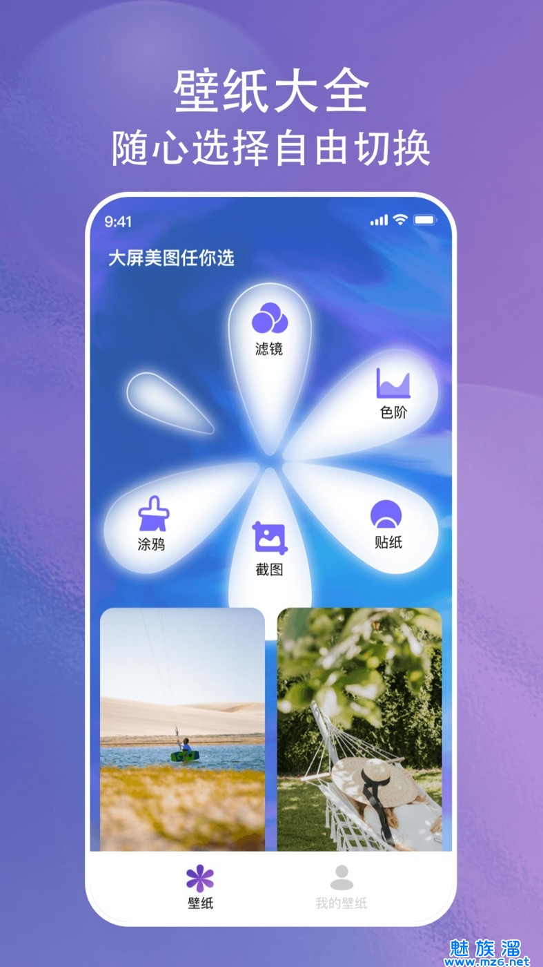 1、轻松地将喜欢的壁纸设置为您的手机屏幕和锁屏;