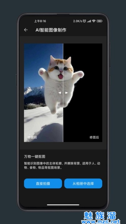 2、可以选择导入本地图片和直接拍照修图;