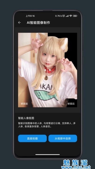 3、拥有AI智能修图方式,可针对性的优化人像照片;